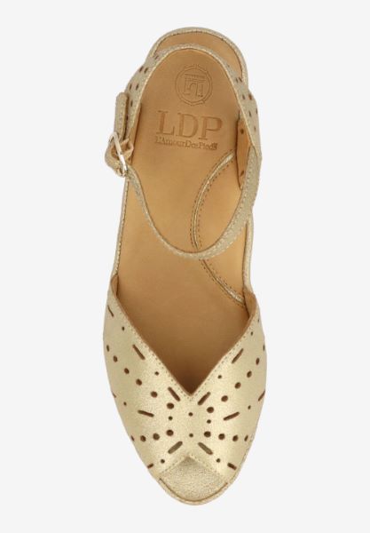 This leather sandal has a round toe, memory foam insole, leather lining and synthetic outsole. This style also features a buckle closure on a 1.5 inch heel.
