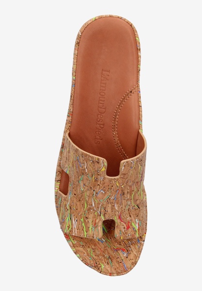 This cork sandal has a memory foam insole, leather lining and synthetic outsole. This slip on shoe is on a 1.75 inch heel.