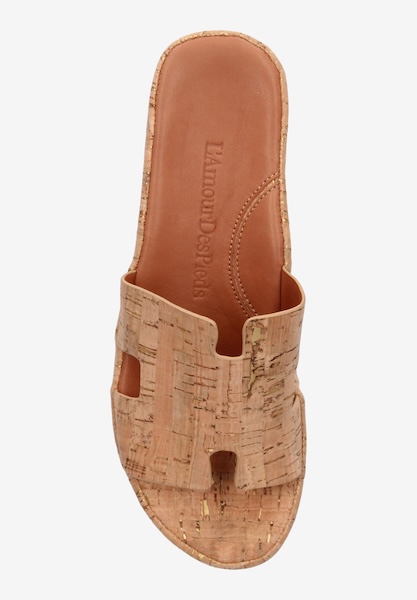 This cork sandal has a memory foam insole, leather lining and synthetic outsole. This slip on shoe is on a 1.75 inch heel.