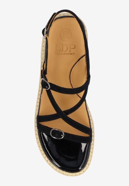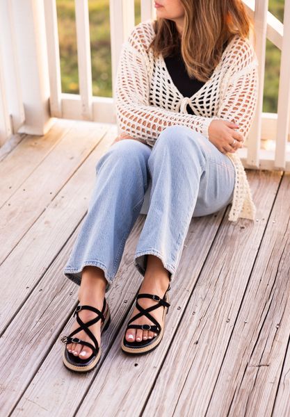 This leather sandal has a round toe, memory foam insole, leather lining and synthetic outsole. This style also features a buckle closure on a 1.5 inch heel.