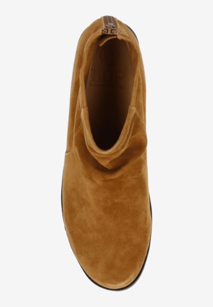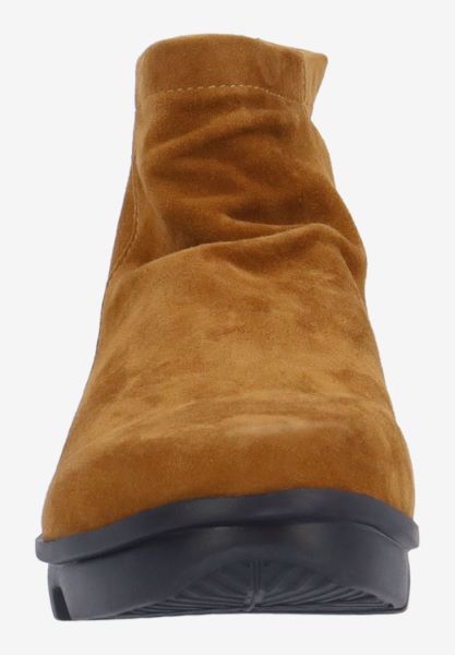 This leather round toe bootie has a memory foam insole, leather lining and synthetic outsole. This bootie has a shaft circumference of 11 inches and shaft height of 5 inches with a zipper cl...