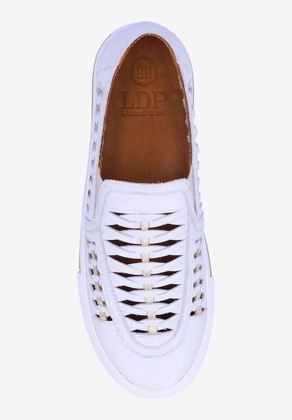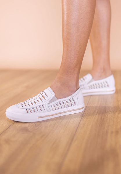 This leather sneaker has a memory foam insole, leather lining and synthetic outsole. This slip on shoe is on a 1 inch heel.