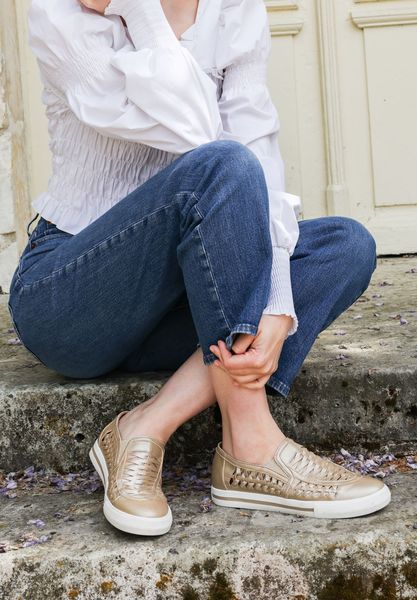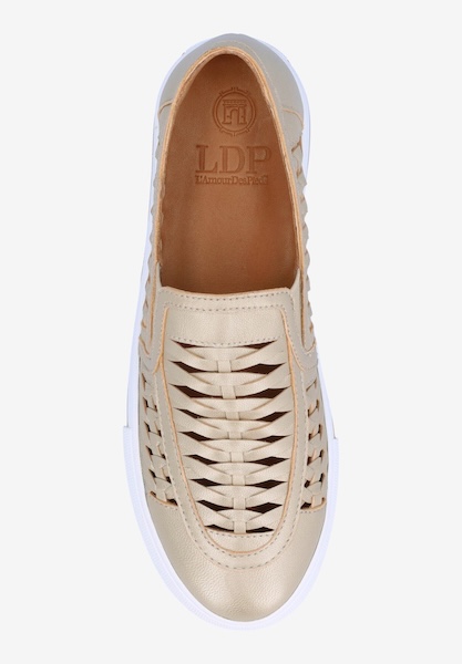 WOMEN'S GOLD LEATHER SLIP ON SNEAKERS