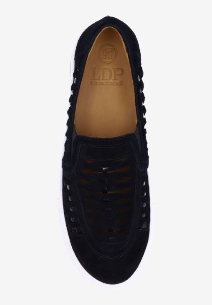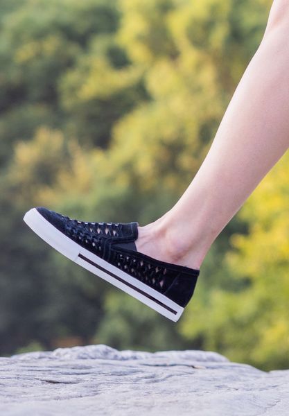 This leather round toe sneaker has a memory foam insole, leather lining and synthetic outsole. This slip on shoe is on a 1 inch heel.