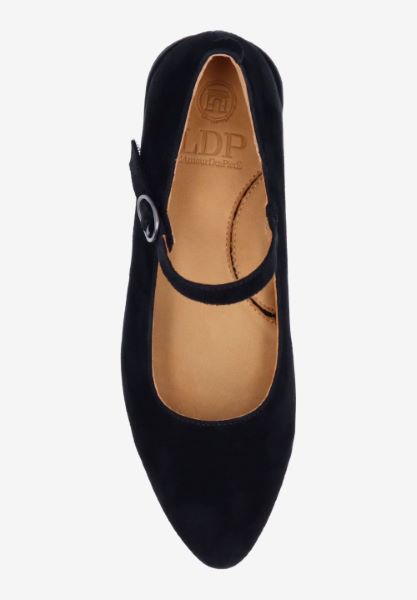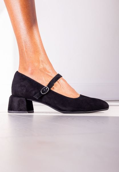 This leather pump has an almond toe, memory foam insole, leather lining and synthetic outsole. This style also features a hook and loop closure on a 1.5 inch heel.