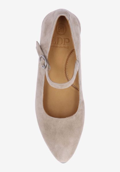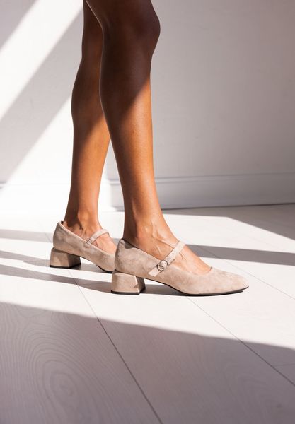 This leather pump has an almond toe, memory foam insole, leather lining and synthetic outsole. This style also features a hook and loop closure on a 1.5 inch heel.
