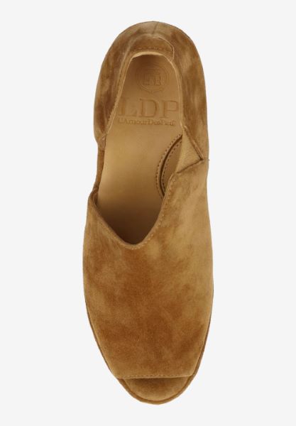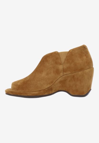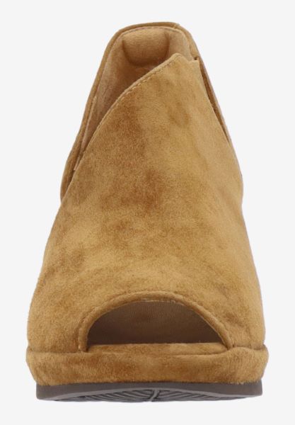 This leather round toe sandal has a memory foam insole, leather lining and synthetic outsole. This slip on shoe is on a 2.75 inch heel.