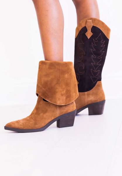 This leather almond toe cowboy boot has a memory foam insole, leather lining and synthetic outsole. This cowboy boot has a shaft circumference of 15 inches and shaft height of 13.5 inches an...